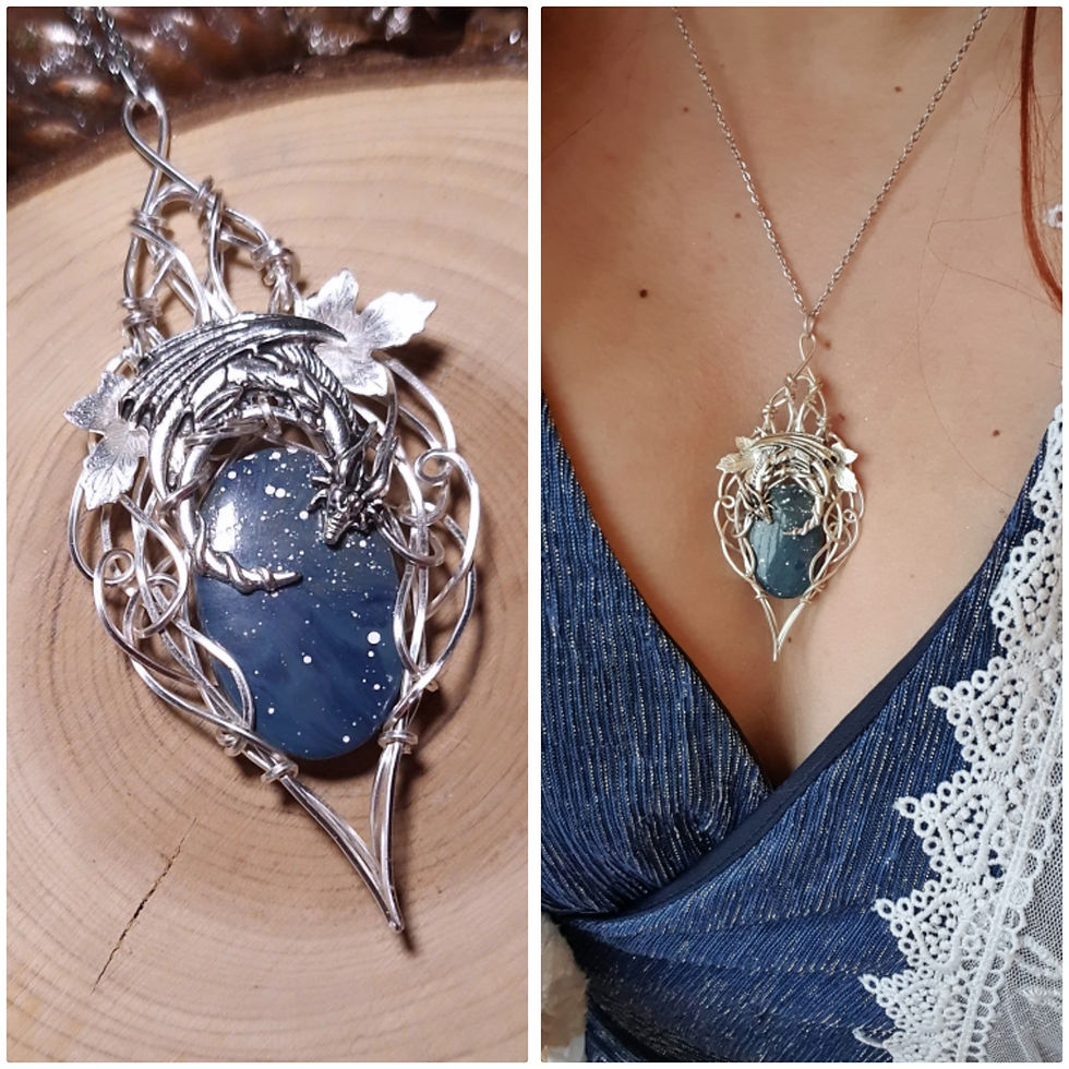 Ce sont donc ces univers, et leur étrange fusion, qui me poussent à créer des bijoux uniques, portant chacun un nom, et une description, mais également des propriétés lithothérapiques provenant des pierres naturelles qui les composent.